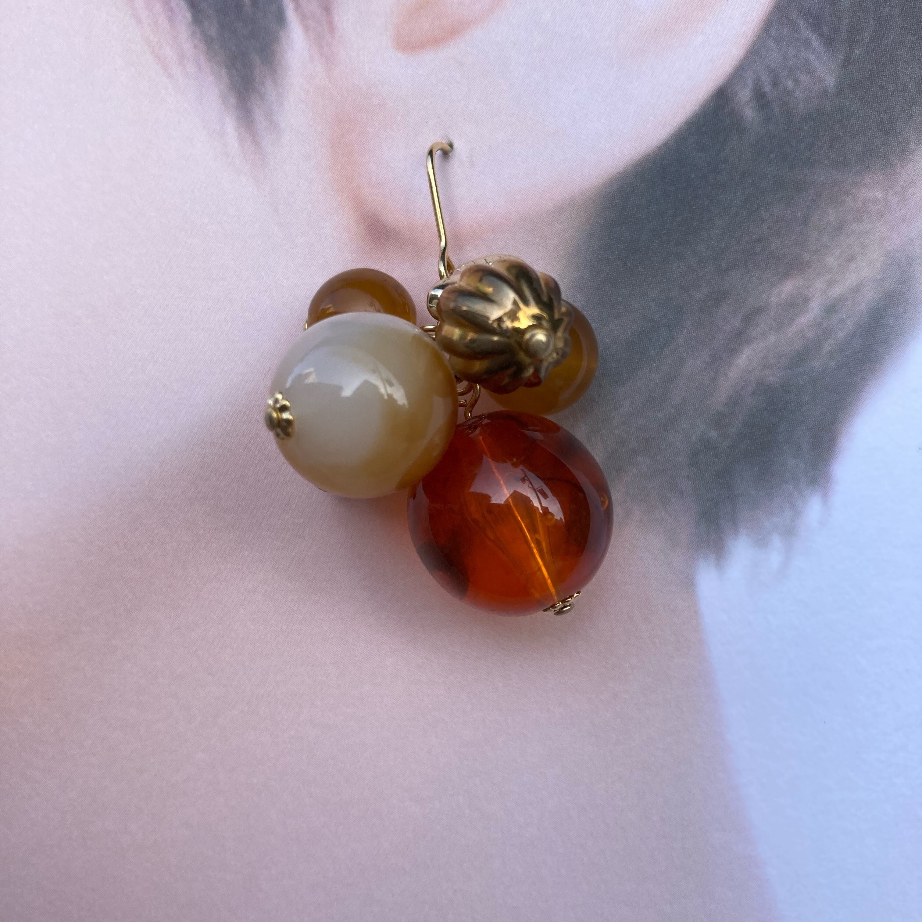 べっ甲風モコモコピアス